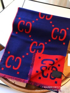 秋冬新款双面拼色g家围巾女羊毛大字母提花咖色羊绒围脖大牌两用