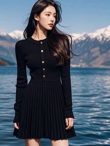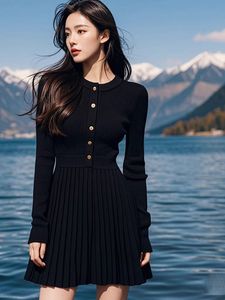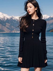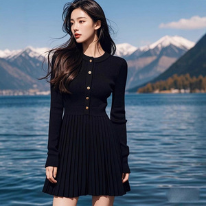 法式黑色掐腰针织连衣裙子女秋冬季2025新款配大衣内搭打底毛衣裙
