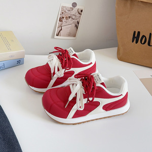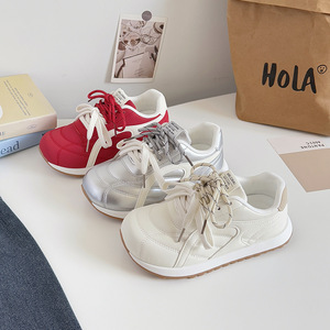 蓓尔阿甘鞋2025年春秋款厚底复古德训鞋女超软拼色华夫鞋子B2806