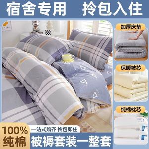 学生宿舍床上六件套被子被褥全套全棉纯棉被套一整套单人床垫套装