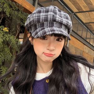 格纹八角画家帽子女秋冬文艺复古显脸小云朵帽时尚百搭鸭舌贝雷帽