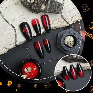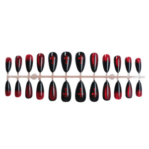24片万圣节跨境爆款杏仁精品猫眼穿戴甲暗黑渐变红彩绘十字架甲片