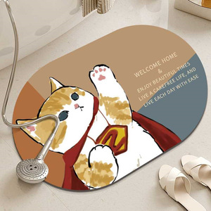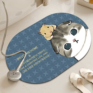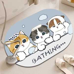 卡通浴室地垫猫咪硅藻泥地垫卫生间门口脚垫耐脏吸水防滑垫子批发