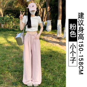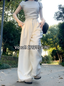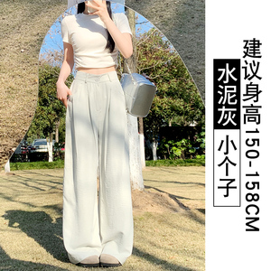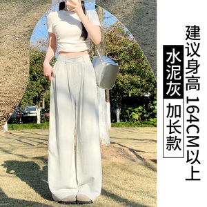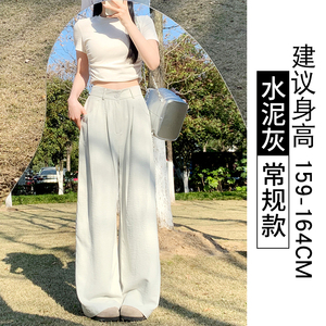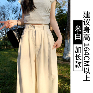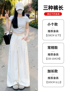 冰丝垂感山本裤女夏季薄款2025新款高腰米白色直筒休闲西装阔腿裤