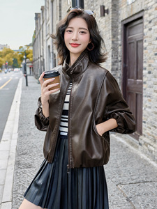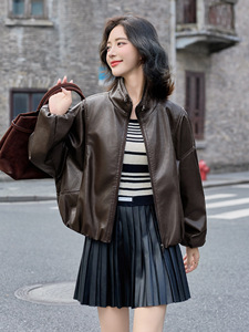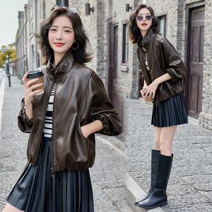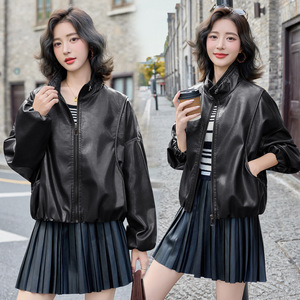 皮衣外套女2025秋新款复古宽松短款小个子显瘦pu机车皮夹克YB3573