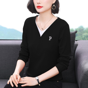 时尚纯棉长袖T恤女秋新款打底衫工厂直销妈妈装跨境上衣服批发