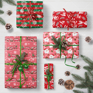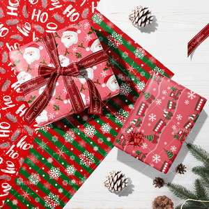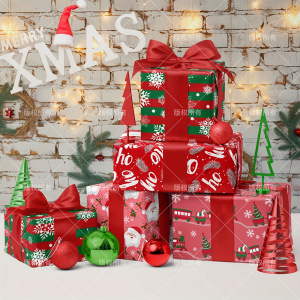 新款圣诞礼品包装纸,派对礼品礼盒装饰铜版纸,8张一套批发