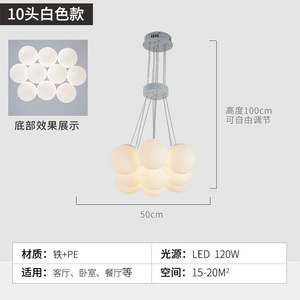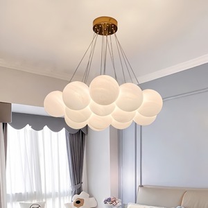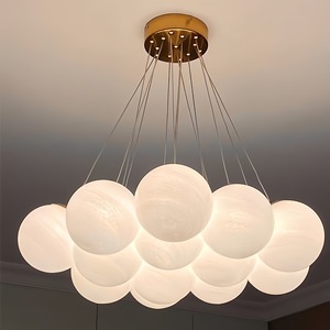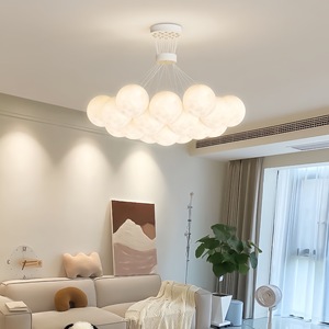 星球灯泡泡球吊灯月球客厅灯创意魔豆玻璃法式奶油风轻奢卧室灯具