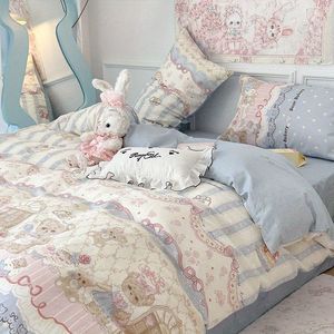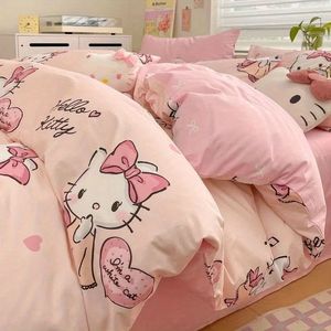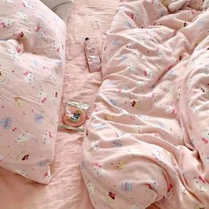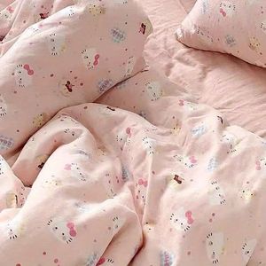 夏日必备糯糯叽叽地粉粉猫水洗棉工艺双人四件套宿舍单人三件套
