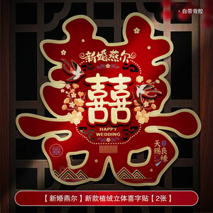 婚房装饰结婚喜字贴婚礼布置婚庆用品大全农村大门口专用囍字贴纸