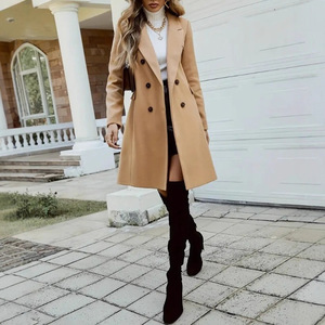 2025跨境欧美贸易秋冬女士气质优雅外套双排扣秋冬呢子大衣