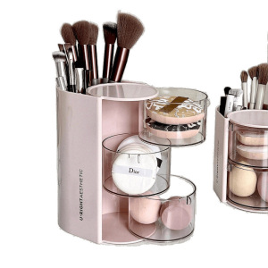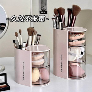 桌面旋转化妆刷收纳筒粉扑眉笔美妆蛋防尘收纳盒小型化妆品置物架