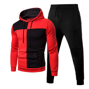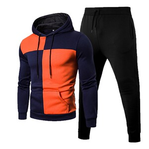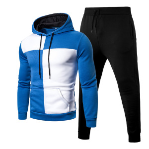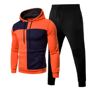 跨境卫衣长裤男春秋季男装时尚休闲修身连帽衫卫衣纯色卫裤套装