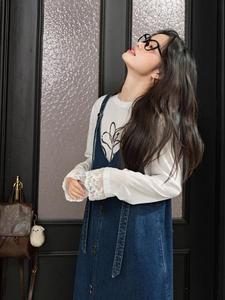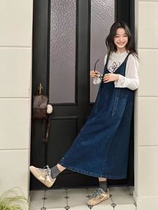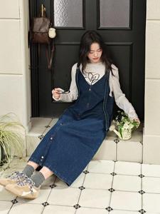 v领无袖吊带连衣裙子女2025秋季新款蓝色背带牛仔裙中长裙秋