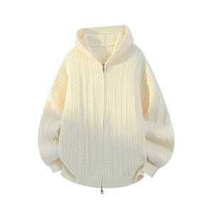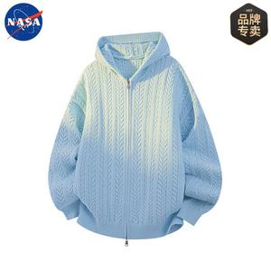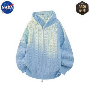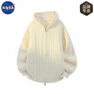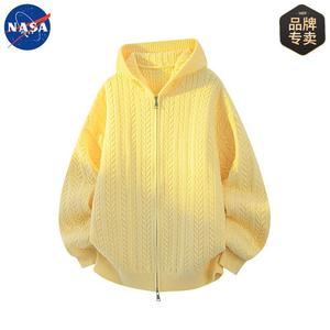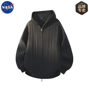 NASA品牌秋冬季肌理感开衫连帽毛衣男女情侣休闲简约百搭宽松外套