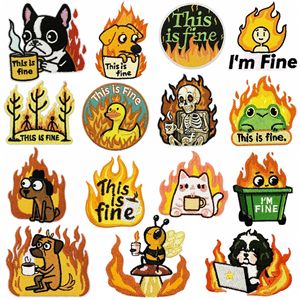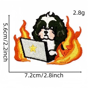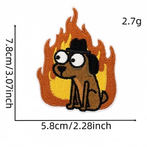 卡通火焰燃烧刺绣布贴趣味小狗补丁装饰电脑绣花熨烫贴片服装辅料