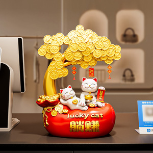 招财猫摆件设计感进宝办公室前台开业礼物发财树装饰品开店礼品