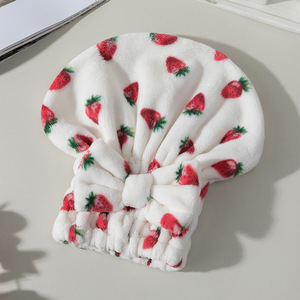 可爱印花草莓干发帽女超强吸水速干包头发毛巾学生加厚洗头浴帽子