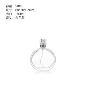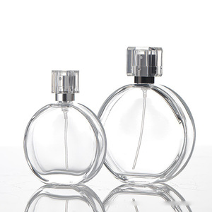 批发50ml扁圆玻璃香水分装瓶透明按压喷雾瓶高级感香水瓶子裸瓶