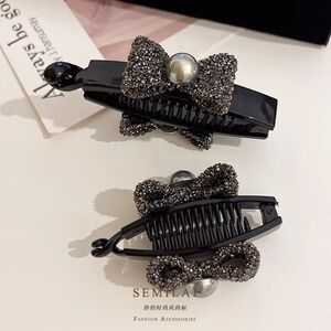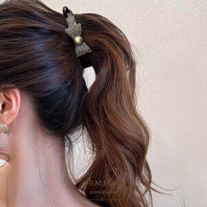 高级灰钻蝴蝶结竖夹发卡精致洋气百搭发夹女高马尾香蕉夹头饰