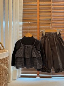 女宝宝格子两件套2025秋季新款儿童洋气韩系简约叠穿女童甜美套装
