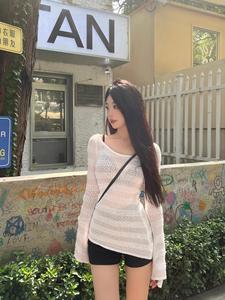 2025白色镂空防晒外搭罩衫薄款感夏季宽松叠穿喇叭袖冰丝针织上衣