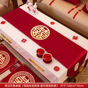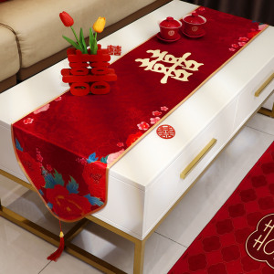 茶几结婚桌布婚房布置装饰桌旗红色婚礼订婚用品喜事婚庆用品大全