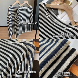 显瘦10斤~慵懒风天丝一字圆领薄款条纹长袖亚麻针织衫女女2025新