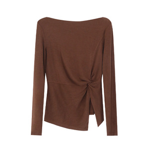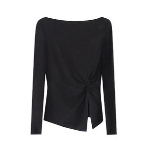 爱西里2025秋高级感扭结设计气质长袖上衣内搭显瘦针织T恤 A1550