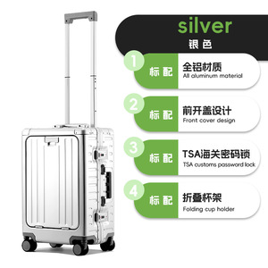 铝镁合金拉杆箱平湖行李箱男女旅行箱20寸登机箱前开口密码箱24寸