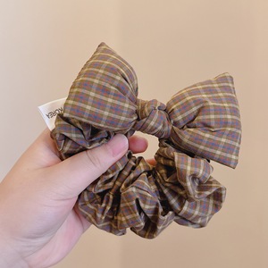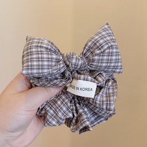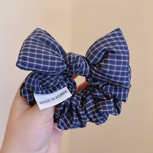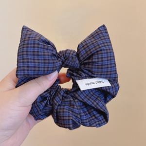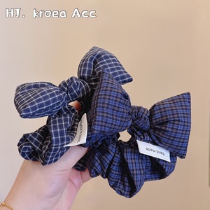 藏蓝色格纹百搭充棉韩系大肠发圈腊肠圈棉花蝴蝶结发绳发饰