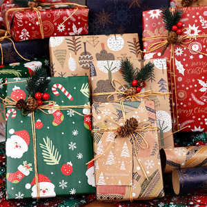 新款亚马逊跨境折叠套装圣诞节礼品圣诞老人雪花铃铛礼物包装纸