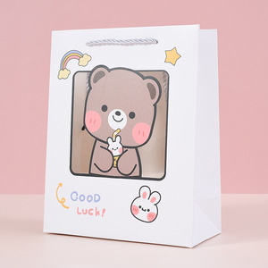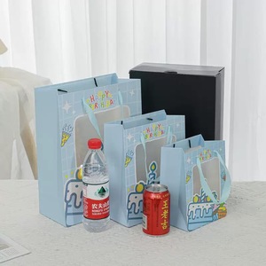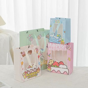 卡通可爱伴手礼包装袋生日蛋糕礼品袋透明橱窗手提袋儿童节日礼袋