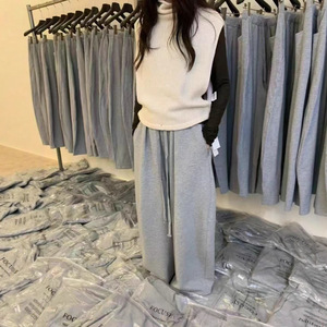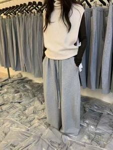 韩系极简风松紧腰系带百搭休闲裤女2025年秋季新款显瘦直筒阔腿裤
