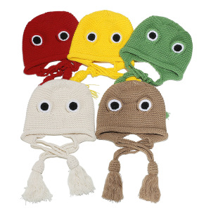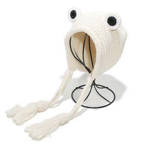 韩版可爱青蛙帽子户外防风护耳毛线帽学生保暖系带针织帽包头帽子