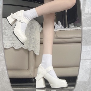 玛丽珍高跟鞋女2025年新款春秋季黑色超高粗跟防水台厚底单鞋猫跟
