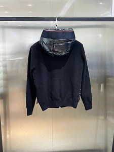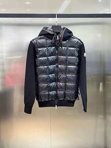 现货蒙家羊毛袖拼接连帽针织羽绒服夹克外套羊毛拼接连帽拉链男女
