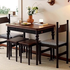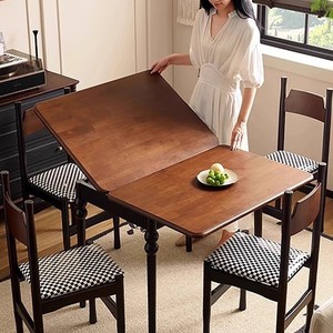 餐桌椅组合中古风餐台家用可变方桌吃饭桌法式复古可折叠长方形桌