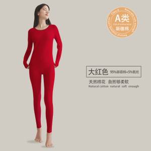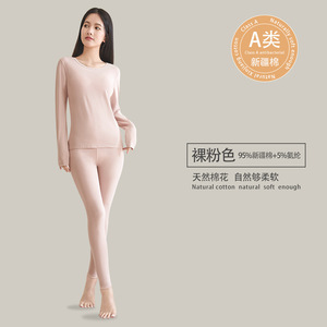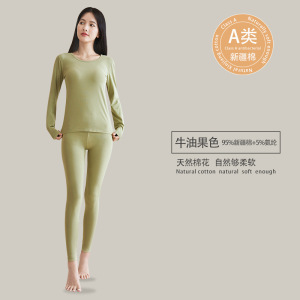 a类纯棉女士秋衣秋裤95%纯棉保暖套装7A抗菌女生圆领保暖打底内衣