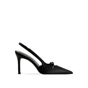 2025新款粉色仙女风镂空蝴蝶结高跟鞋女法式缎面尖头后空绝美凉鞋