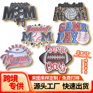 跨境专供热销棒球橄榄球亮片刺绣贴大号衣服辅料包包装饰补丁贴