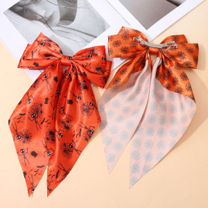 万圣节发饰幽灵蜘蛛网飘带弹簧夹南瓜头布艺印花发夹派对装扮头饰