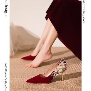 尖头细跟结婚鞋子2025年新款中式秀禾敬酒服酒红色新娘婚鞋女
