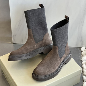 欧美高端BC切尔西短靴舒适通勤弹力靴女平底短靴一脚蹬懒人鞋女鞋