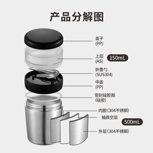 不锈钢304双层真空酸奶杯燕麦杯便携牛奶杯带勺早餐杯可洗碗机
