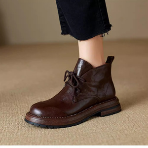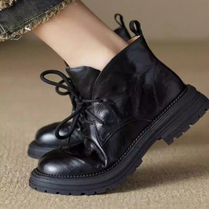 小个子复古抓纹软皮系带厚底短筒马丁靴女2025秋冬新款单靴显瘦短