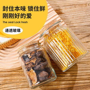 大容量浮雕透明玻璃瓶密封罐竹盖收纳罐茶叶罐零食干果分装瓶
