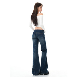 复古蓝色低腰微喇叭牛仔裤女2025年秋季新款美式不贴腿显瘦喇叭裤