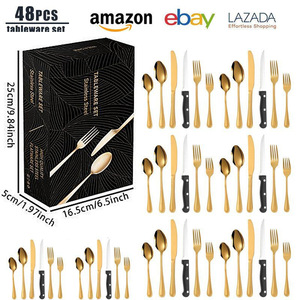 冰点价爆款跨境亚马逊不锈钢餐具24/36/48/72套装带盒子刀叉勺子