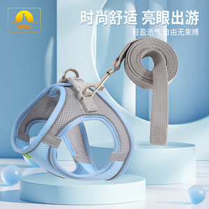 狗狗牵引绳背心式中小型犬遛狗绳幼犬 拼色网布透气反光胸背带